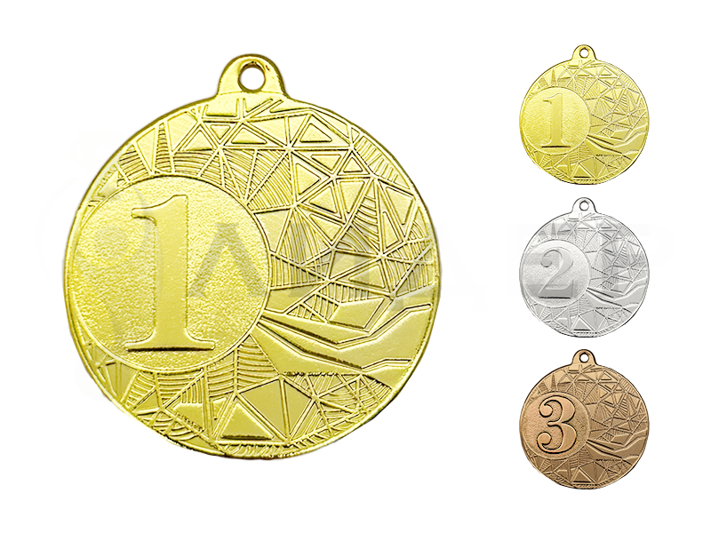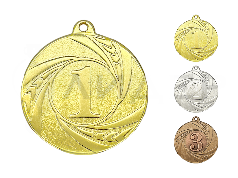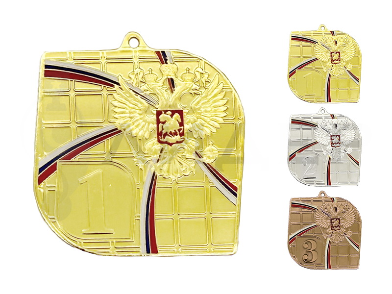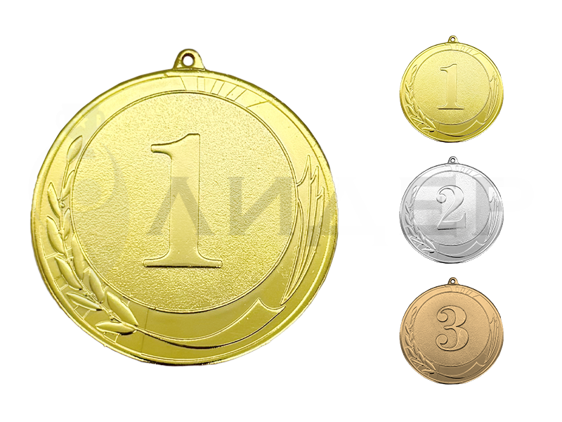 - Спортивные медали, диаметром от 32 до 70 мм, в золотом, серебряном и бронзовом исполнении;